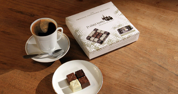 Originální bonboniéra Pražská kostka navazuje na dlouho-dobou tradici výroby čokoládových produktů v Čechách. Bonbóny jsou skvěle chuťově sladěny - jde o hořkou čokoládu s karamelem, mléčnou čokoládu s nugátem a bílou čokoládu s kávou.